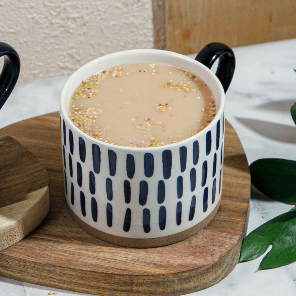Напиток готовится из отваренного пшена, который затем смешивается с черным чаем с молоком