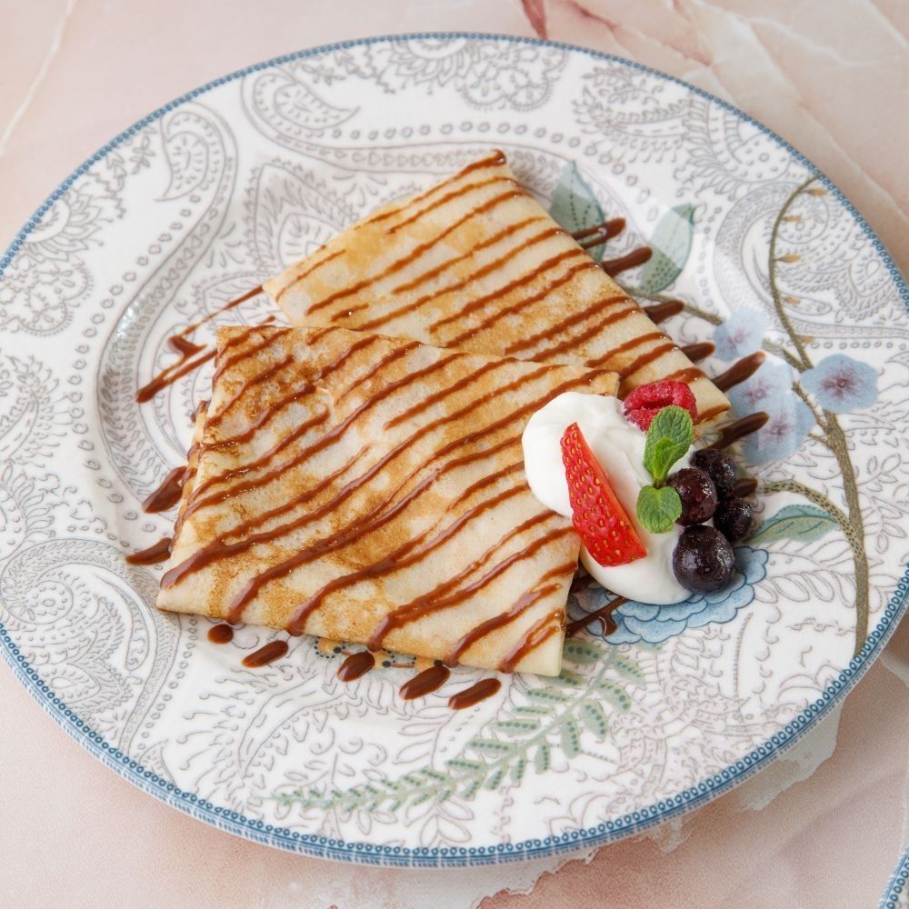 Құймақ, жидектер, қоюлатылған сүт, түрік шоколады / Блины, ягоды, сгущенка, шоколад турецкий