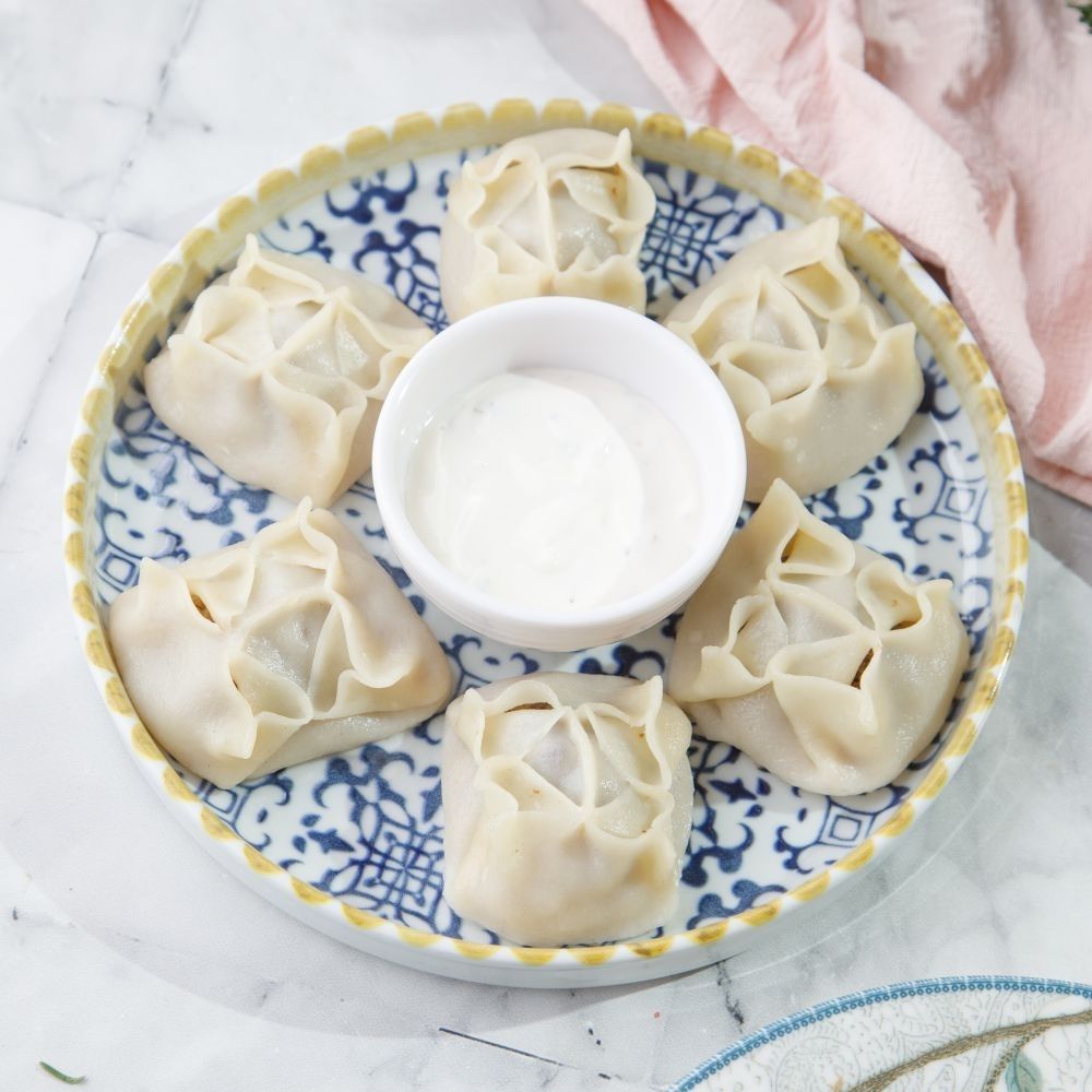 Бір порцыяда 6 дана; қамыр, тартылған сыир еті , пияз, ақ соусы/Порция 6 шт: тесто, фарш говяжий, лук репчатый, белый соус
