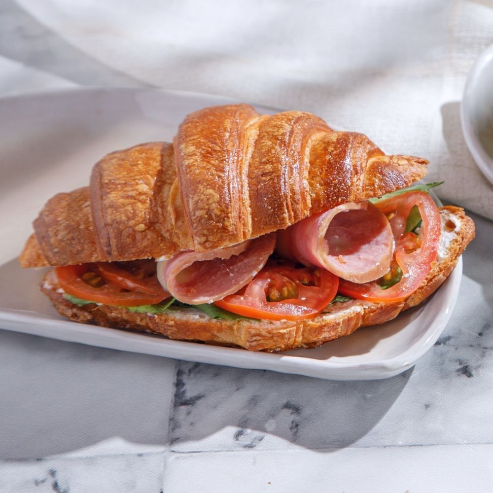 Круассан, өңделген ірімшік, микс салаты, қызанақ, күркетауық шұжығы / Круассан, индейка с сыром, плавленный сыр, помидор, микс салата