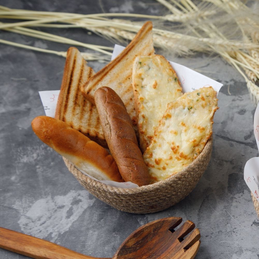 Қара бөлке нан, бидай бөлке наны,тост наны, ірімшік сарымсақ дәмімен жасалған гренкалар/ Багет ржаной, багет пшеничный, тостовый хлеб, чесночно-сырные гренки