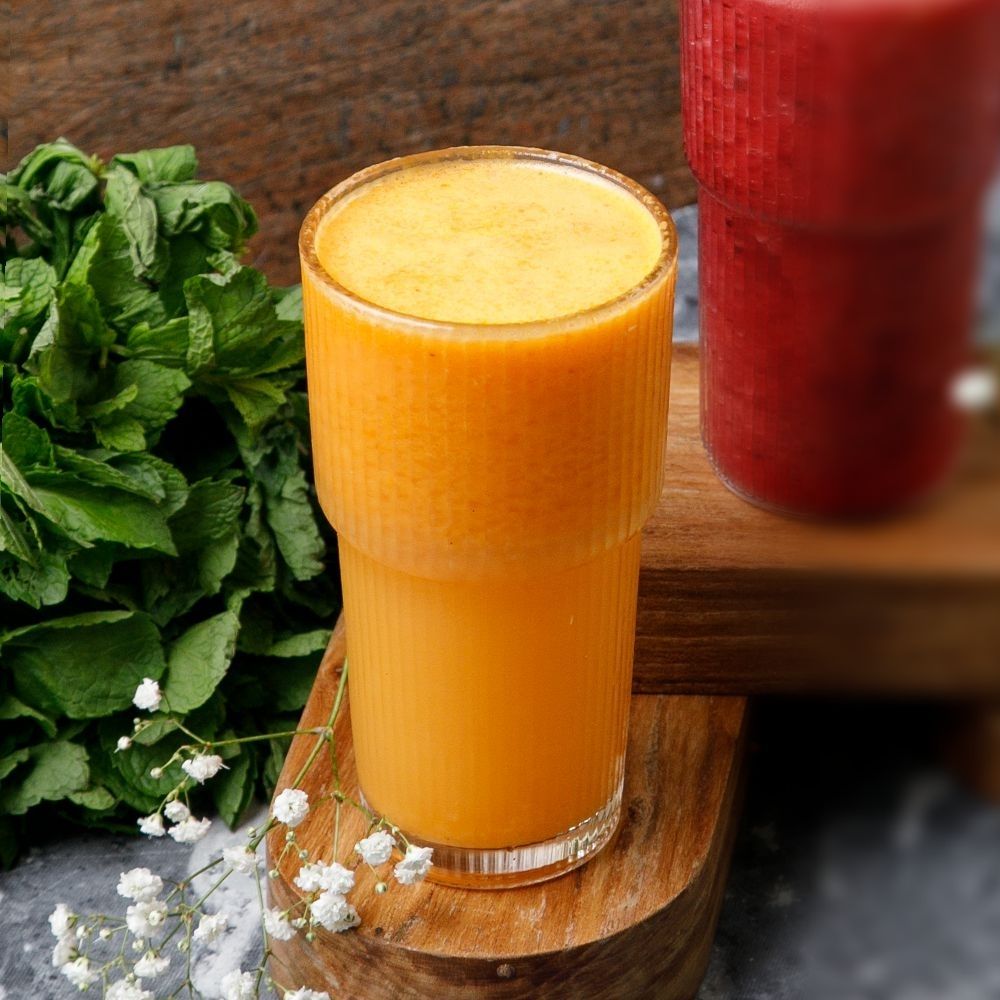 Облепиха, зібір, алма шырыны, мандарин, бал, мұз/ Облепиха, имбирь, яблочный фреш, мандарин, мёд, бадьян
