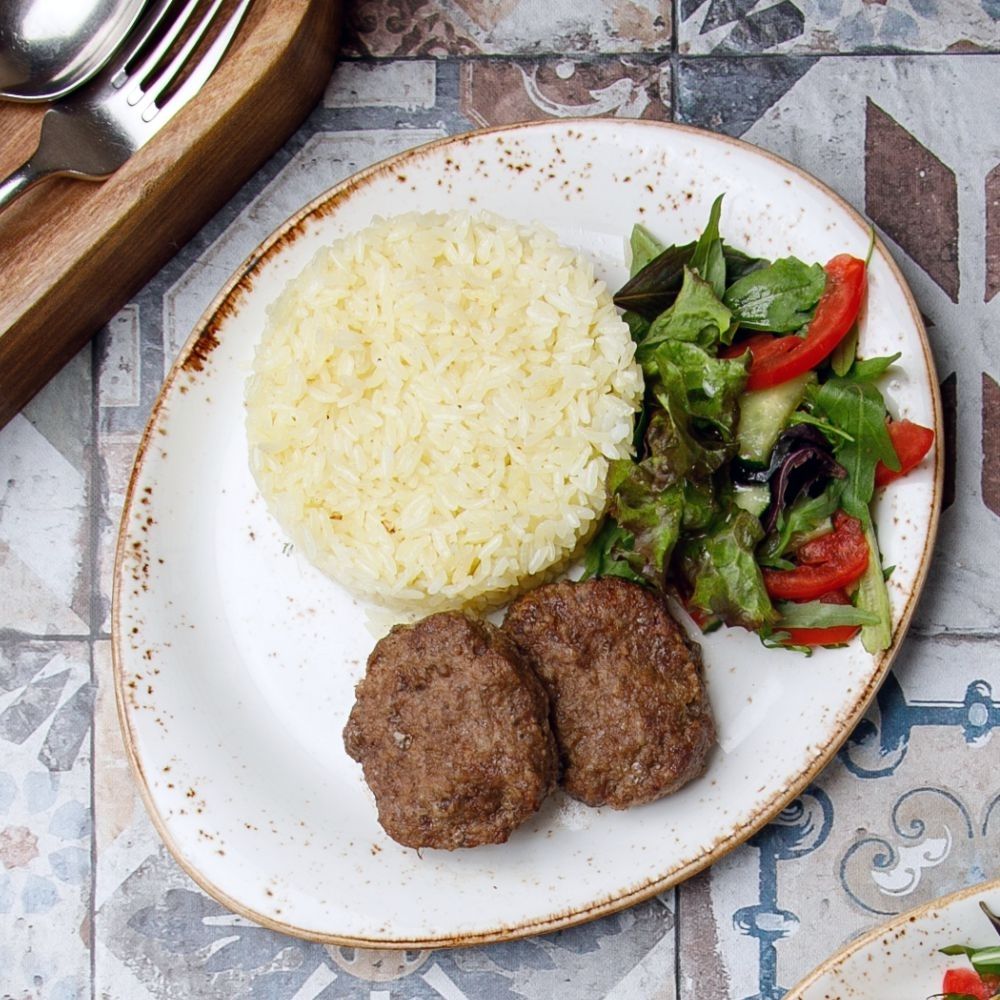Күріш және сиыр котлеттері/Котлеты из говядины с гарниром